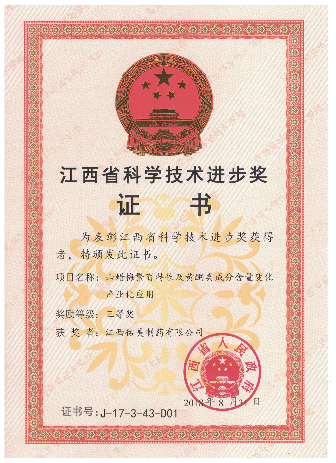 山蠟梅繁育特性及黃酮類成分含量變化產(chǎn)業(yè)化應(yīng)用——省科學(xué)技術(shù)進(jìn)步獎三等獎