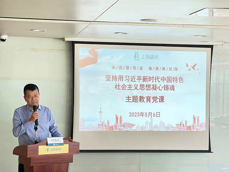 按照建科集團(tuán)黨委關(guān)于學(xué)習(xí)貫徹習(xí)近平新時(shí)代中國特色社會(huì)主義思想主題教育工作的統(tǒng)一部署,5月5日至6日,集團(tuán)黨委委員、副總裁、天津咨詢董事長(zhǎng)何錫興深入天津咨詢所屬泛亞公司開展調(diào)研,并為全體黨員講題為《堅(jiān)持用習(xí)近平新時(shí)代中國特色社會(huì)主義思想凝心鑄魂》主題教育黨課。