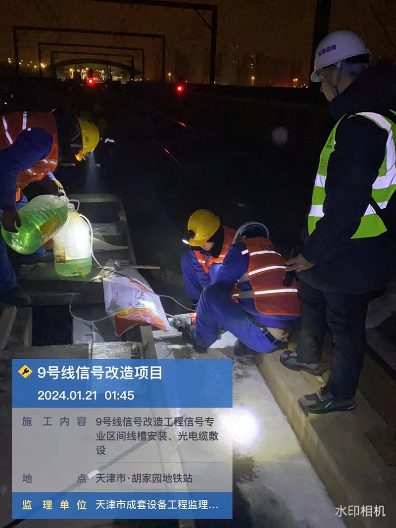 由于本工程采用邊運營邊改造方式,施工只能在夜間停車后進行。項目團隊必須每天21點集合,奔赴各個站點,至次日凌晨4點前后才能出站返回。施工站點大多數(shù)為高架站,站與站之間最遠距離9千米,監(jiān)理人員在站內旁站徒步到達施工點位,有時幾近1小時。項目施工的條件艱苦、工期緊迫、質量標準高。12月中旬,又恰逢天津市幾年不遇的一場大雪,氣溫降到近10年歷史同期極值。在如此惡劣的氣候條件下,項目監(jiān)理團隊不畏嚴寒、嚴格現(xiàn)場巡查和驗收標準,堅守和奮戰(zhàn)每一個夜晚,在寒冷的冬季展現(xiàn)了每個人職業(yè)和專業(yè)的敬業(yè)精神。天津咨詢工會和第三事業(yè)部黨總支積極關心項目一線員工的冷暖,及時籌備棉大衣、保溫杯、厚手套、發(fā)熱鞋墊、暖寶寶等御寒物資開展慰問,前后臺齊心協(xié)力。