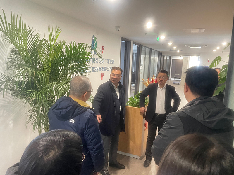 會(huì)前,李連慶一行在孫亞龍陪同下參觀了天津咨詢梅江中心大廈辦公區(qū),并實(shí)地調(diào)研開評(píng)標(biāo)室。