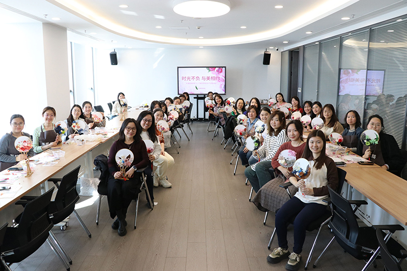 3月8日,工會組織女職工開展“時光不負(fù)、與美相約”—國潮古風(fēng)文化團(tuán)扇DIY活動。來自各部門的女職工們圍坐在一起,融合創(chuàng)意、交流構(gòu)思,將象征著永不凋謝的美好的永生花與團(tuán)扇結(jié)合,在親手制作中感受古風(fēng)之美,在談笑盈然間增進(jìn)友誼,讓大家在感受美、欣賞美、創(chuàng)造美的過程中度過一個愉快的婦女節(jié)。