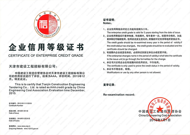 中價(jià)協(xié)信用等級(jí)證書-AAA